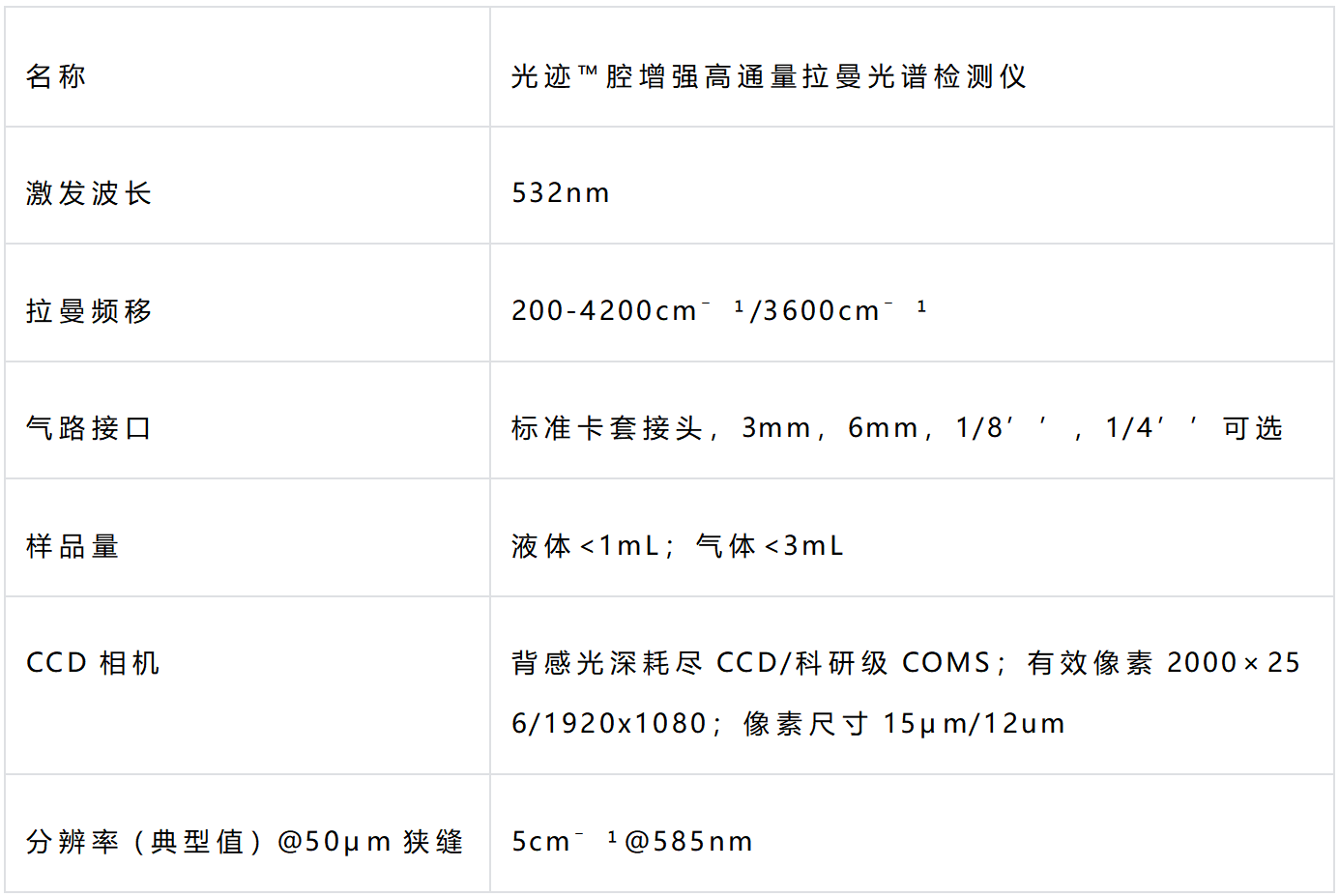 其核心产品“光迹腔增强高通量拉曼光谱检测仪”关键性能指标亮眼: