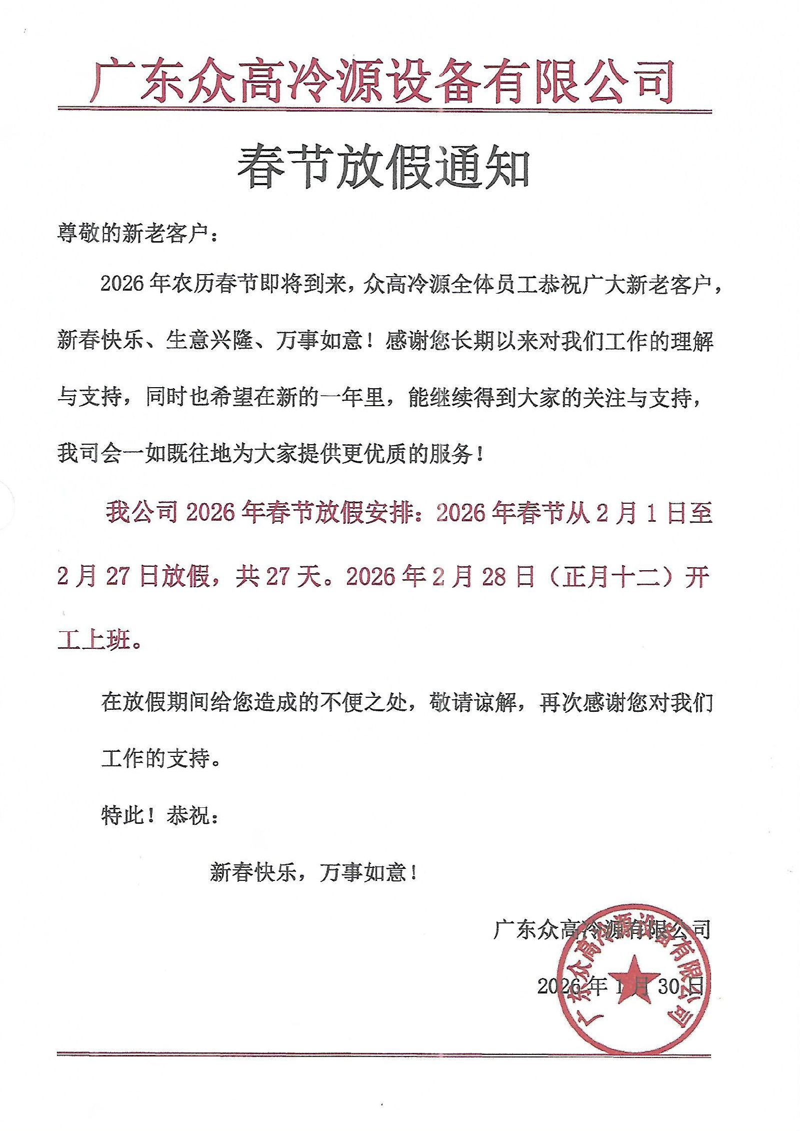 2026年农历春节即将到来,众高冷源全体员工恭祝广大新老客户, 新春快乐、生意兴隆、万事如意!