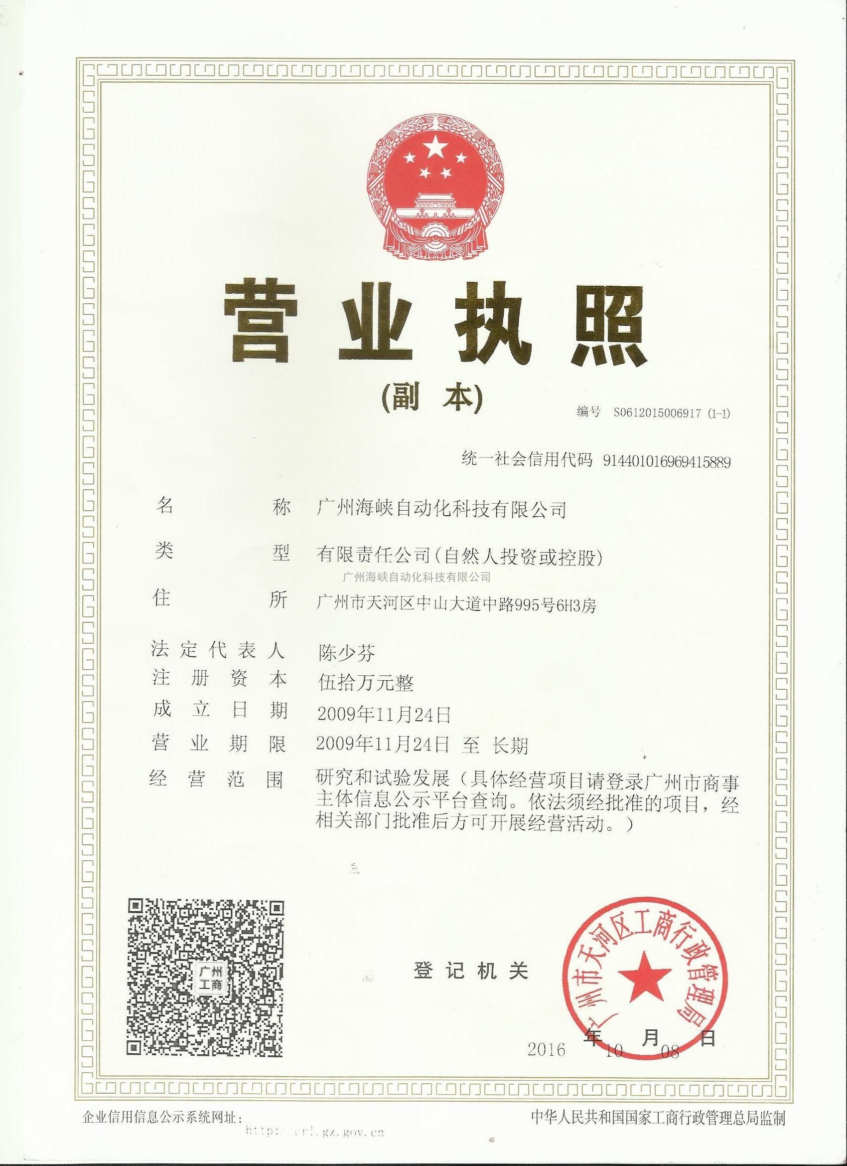 - 公司名称:广州海峡自动化科技有限公司