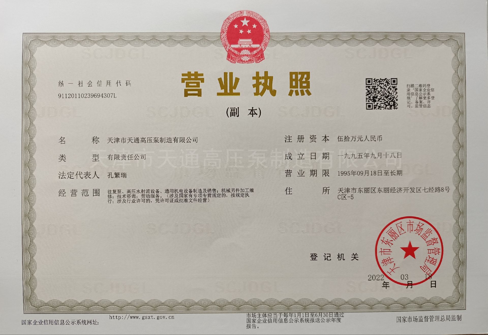 - 公司名称:天津市天通高压泵制造有限公司