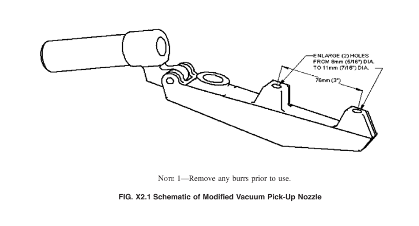 5.1.4真空抽吸系统和真空吸嘴,用于在测试过程中清除试样表面的碎屑和磨料颗粒。真空吸嘴的高度应可调,喷嘴开口直径应为11 mm[716 in.]。