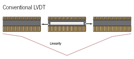 The output of an LVDT is a linear function of displacement over its calibrated measurement range. Beyond this range the output becomes increasingly non-linear. Measurement range is defined as ± distance from the transducer null position.