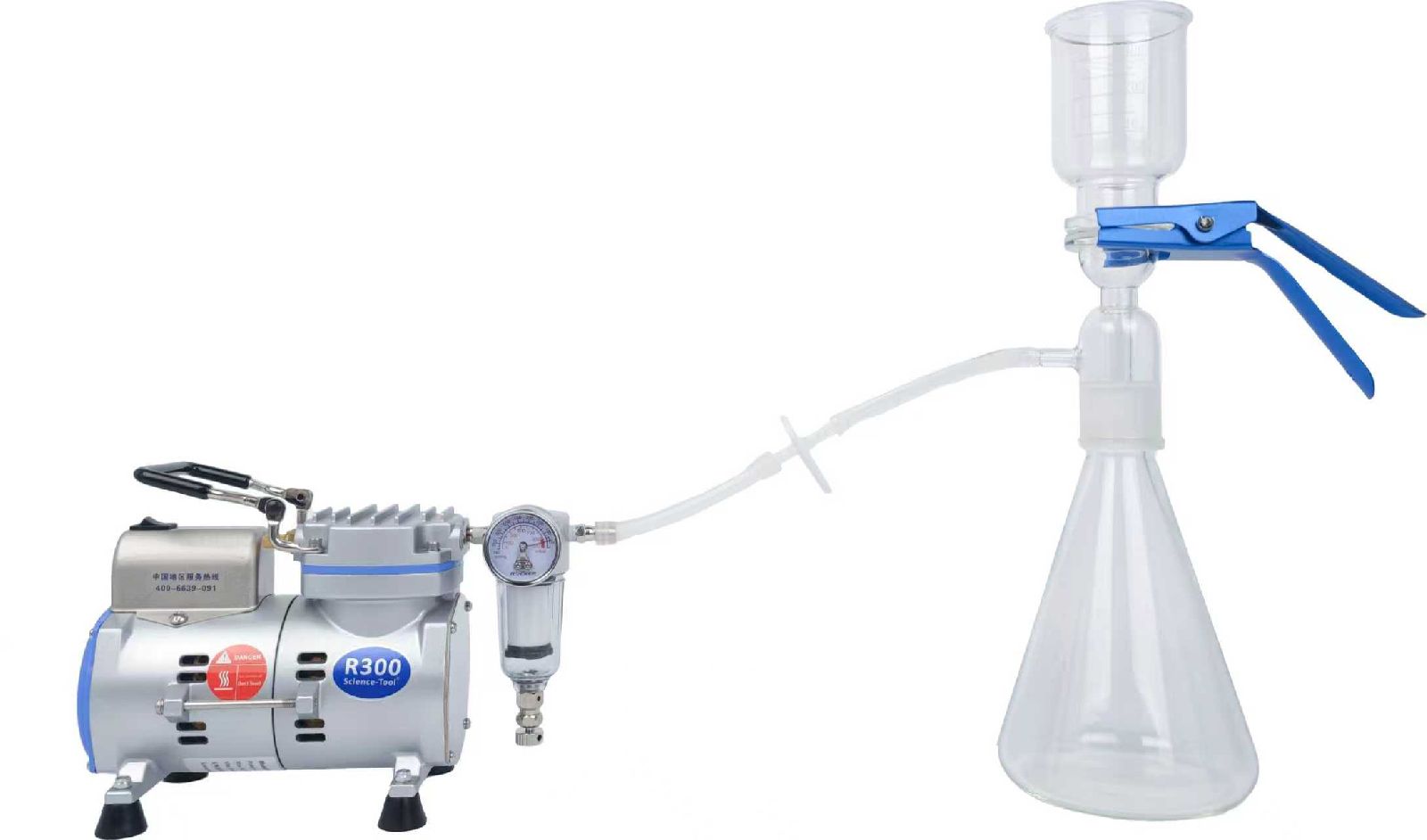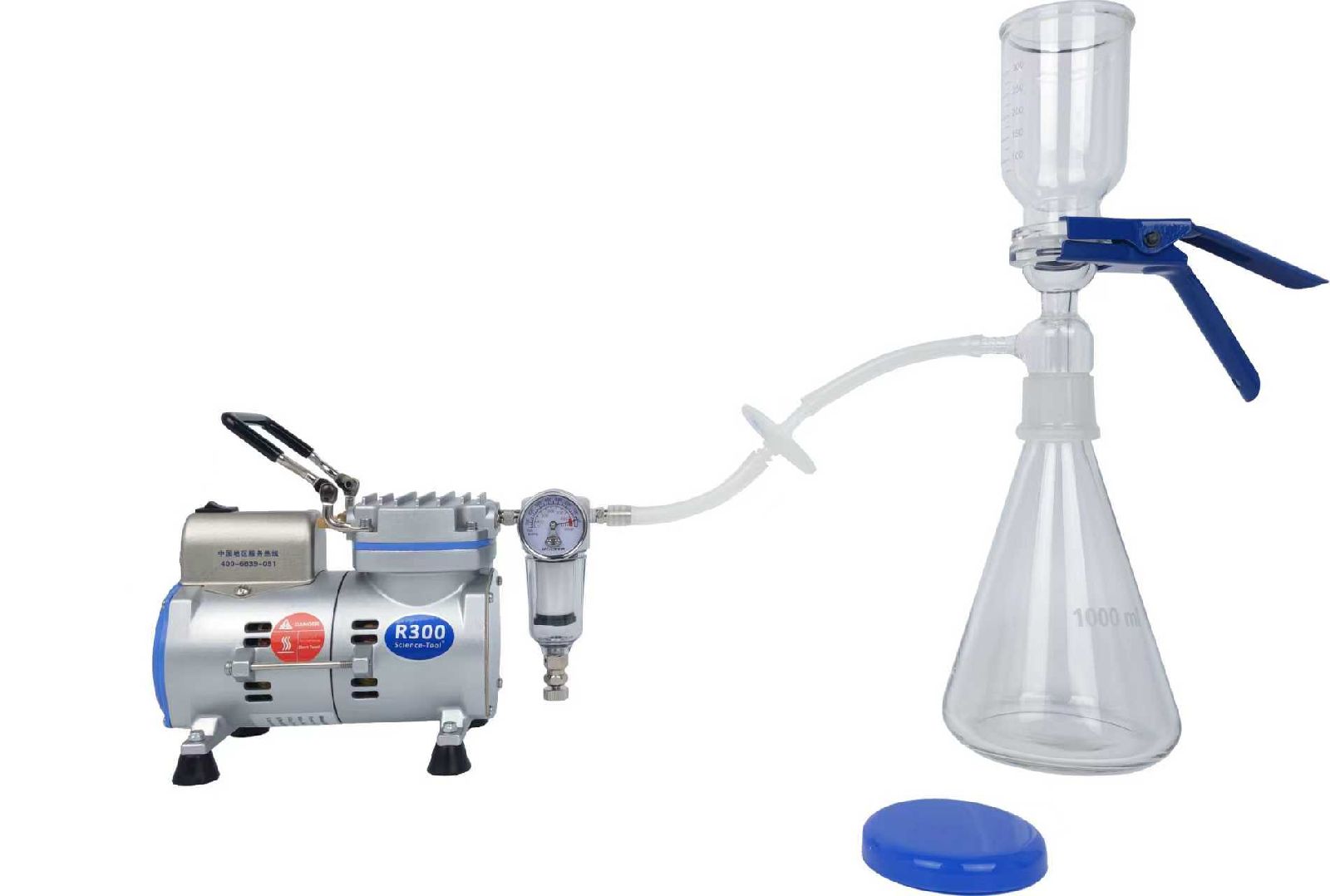 土壤经浸提剂(如DTPA、CaCl溶液)振荡后,液体中含有大量微细土壤颗粒和胶体。直接分析会损坏仪器、干扰结果,颗粒物负荷高,极易堵塞滤膜。由于浸提液是各类溶剂,需要考虑化学兼容性的问题,所以仍然推荐使用通用性强的砂芯玻璃真空过滤器,比如R300E系列真空抽滤装置,能够提供4款不同容量规格过滤瓶组,可以按需选择。