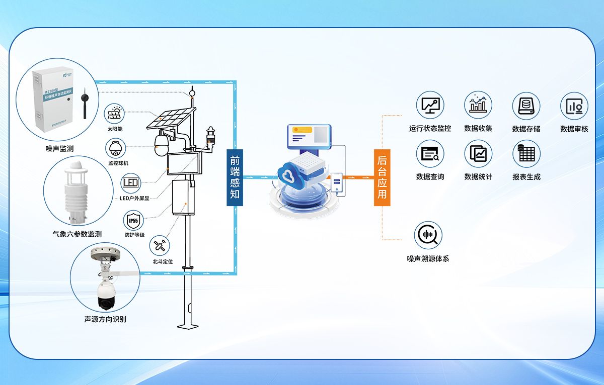 明德环保M2300系列的噪声溯源体系利用物联网、AI智能分析、大数据模型等技术实现远程实时监控和预警,使得噪声管理更加精准高效,有效助力噪声污染防治工作。