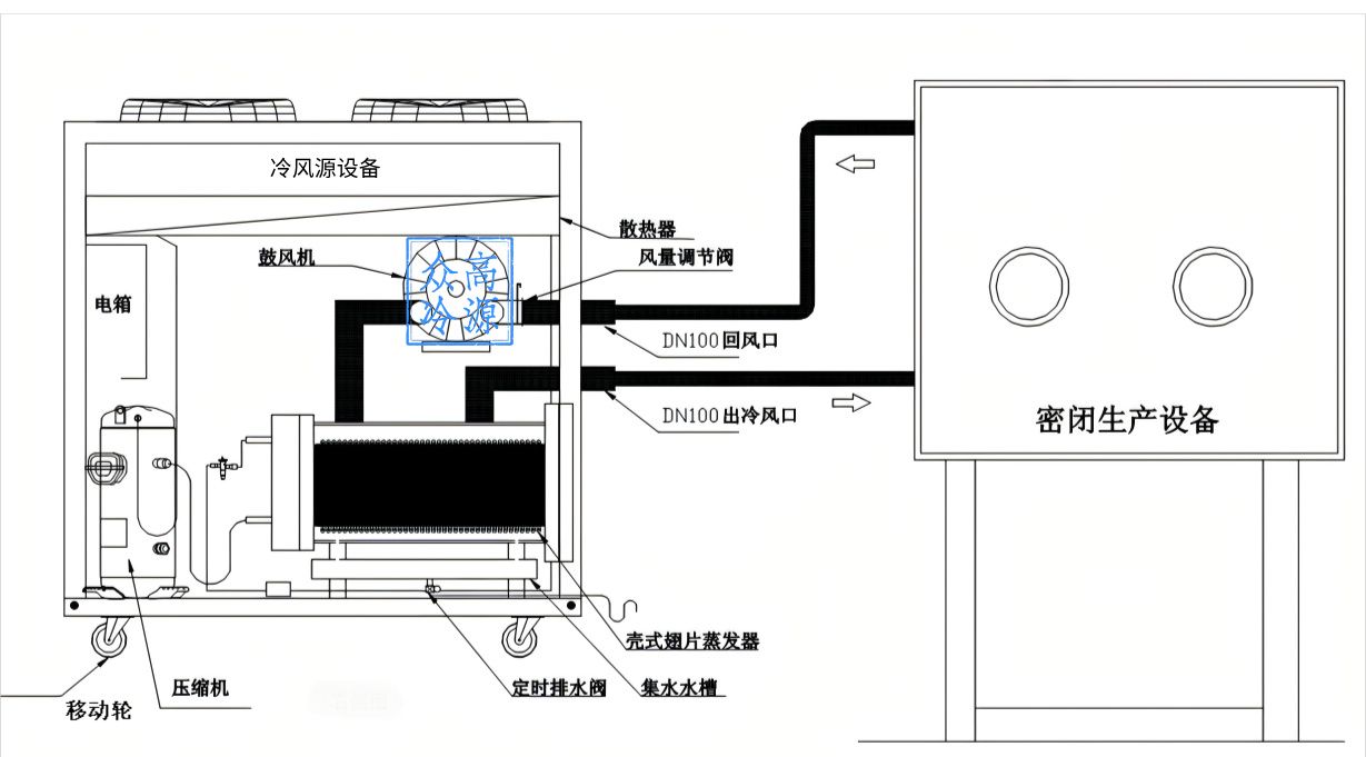 带压缩机冷风源系统通常包括:
