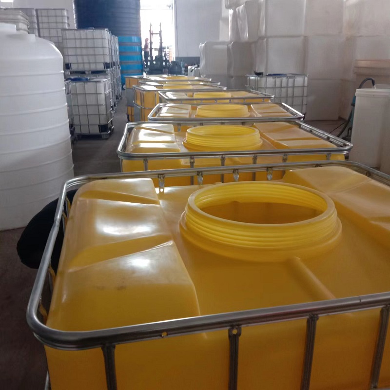 集装桶的内容器采用进口聚乙烯材料,外护套为镀锌钢管焊接的网格,底盘采用四向进叉型全钢型托盘,放置稳固。工艺为旋转滚塑,一次成型,无缝焊接,壁厚更厚,产品强度更大,可耐强酸强碱,使用年限大大延长。