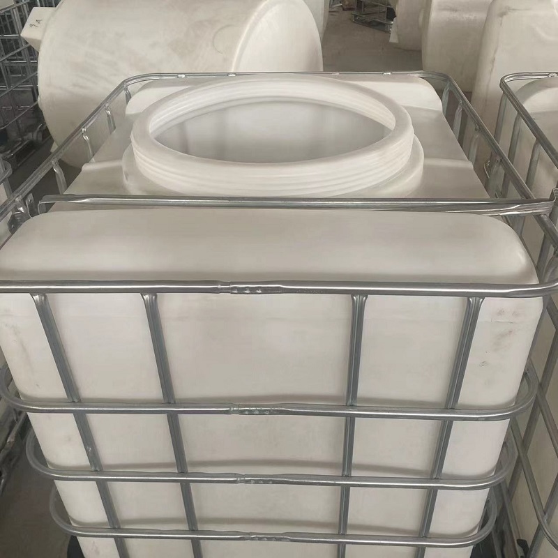 原料经吹塑一次成型。外层保护架为带托盘镀锌铁架。华社吨桶售价