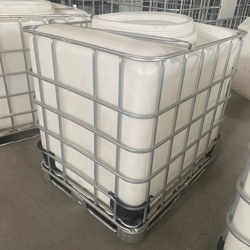 集装桶的内容器采用高密度聚乙烯材料,外护套为镀锌钢管焊接的网格,底盘采用四向进叉型全钢型托盘,放置稳固,便于排除容器内的残余物。