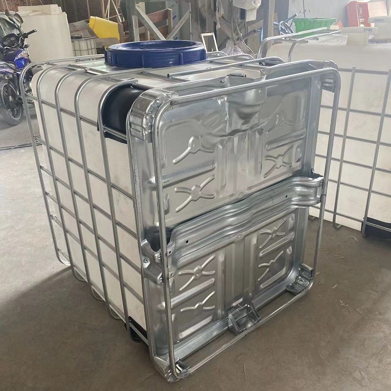集装桶的内容器采用高密度聚乙烯材料,外护套为镀锌钢管焊接的网格,底盘采用四向进叉型全钢型托盘,放置稳固,便于排除容器内的残余物。