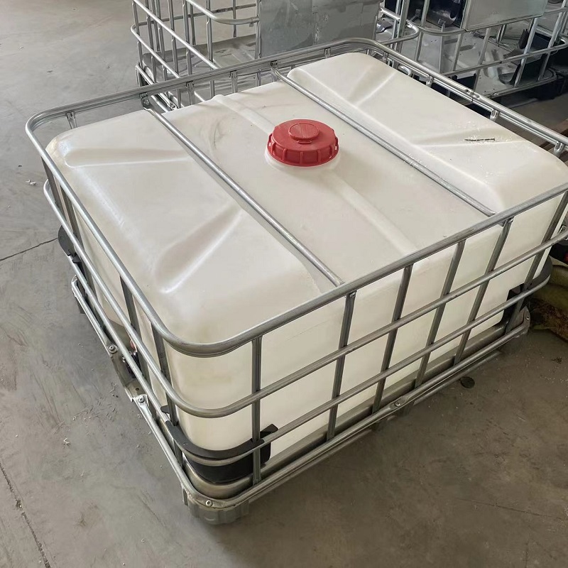 集装桶的内容器采用进口聚乙烯材料,外护套为镀锌钢管焊接的网格,底盘采用四向进叉型全钢型托盘,放置稳固。工艺为旋转滚塑,一次成型,无缝焊接,壁厚更厚,产品强度更大,可耐强酸强碱,使用年限大大延长。