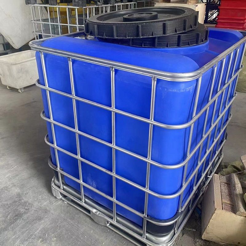 集装桶的内容器采用进口聚乙烯材料,外护套为镀锌钢管焊接的网格,底盘采用四向进叉型全钢型托盘,放置稳固。工艺为旋转滚塑,一次成型,无缝焊接,壁厚更厚,产品强度更大,可耐强酸强碱,使用年限大大延长。
