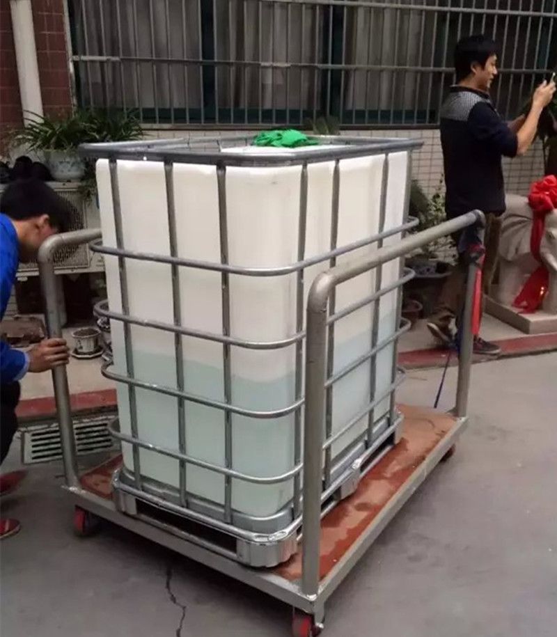 大容量包装,使用水(密度为1)为介质,每个可以灌装一吨重量(以1000升为例);内胆上铸有容积的刻度,用户可以利用容器的透明特性,清楚地看见容器内的液全高度。内容器采用韩国大林公司生产的HDPE(型号:4570UV)吹塑成型,抗紫外线、防老化易清洗、无毒性,强度高,耐腐蚀,卫生性好,使用寿命长,安全可靠;
