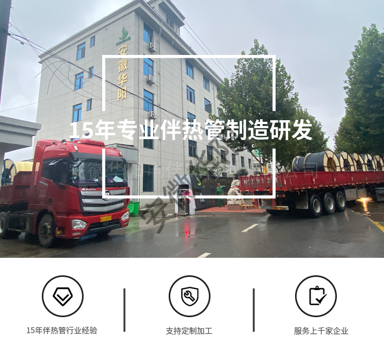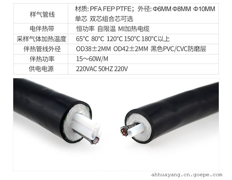 安徽华阳电伴热材料有限公司通过对国外类似产品的调研与分析,开发研制成功耐腐伴热采样复合管。该产品作为废气连续监测系统中起始基础采样用的重要部件,具有耐酸碱腐蚀、对管线可进行自限温伴热、抗干扰能力强、便于信息计算机化等特点。