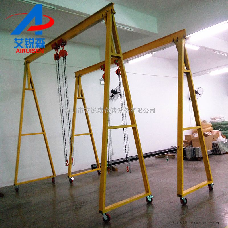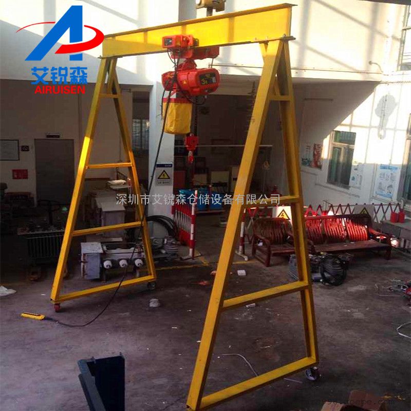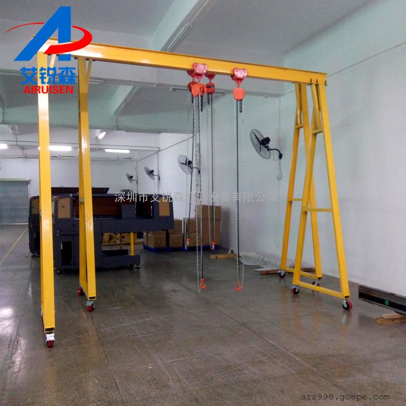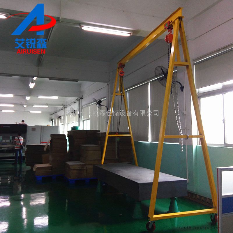 简易龙门架是根据中、小工厂(公司)日常生产需要搬运设备、仓库进出货,起吊维修重型设备及材料运输的需要,设计开发的小型起重设备。适用于制造模具、汽修工厂、矿山、工地及需要起重场合。简易龙门架***大的优点是可全方位移动性,占地面积小,钢架构设计合理,能承受从500~3000KG重量。尤其适用于车间设备的安装、搬运、调试。汽车上货物的装卸,汽修车间吊装发动机大件等。简易龙门架下安装有万向承重轮,可在平整地面上全方位移动起吊物品;通过电动或人力葫芦,实现起重机械化。可减少人力,降低生产运营成本,提高工作效率。简易龙门架需根据客户的现场情况定做不同的产品。移动小龙门架吊运葫芦可选用手拉葫芦或电动葫芦,产品实用性强。