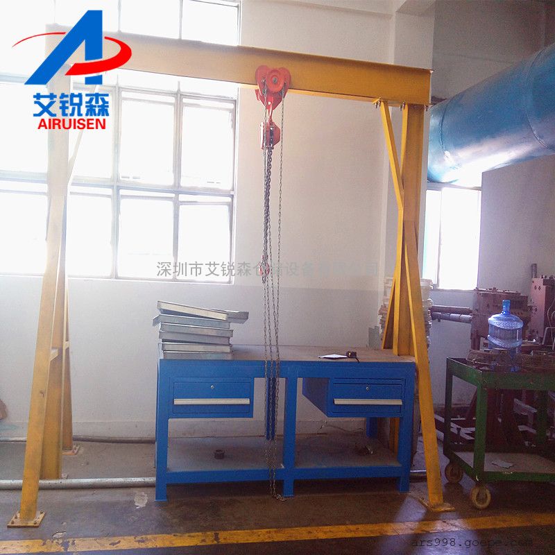一、艾锐森设计制造的移动式龙门架系列产品具有结构简单,安全可靠,操作方便,转动灵活,作业空间大,投资成本低,适用于设备的安装调试、磨具的装卸与维修、仓库货物的装卸车等吊运场合。比其他常规性吊运设备更显示其优越性。