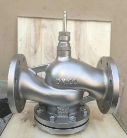 热媒介质流过调节阀门和换热设备,把被加热介质升温。温度传感器随着被加热介质的温度变化,将温度信号送至控制器,与预先设定的温度比较运算后将0-10V或4-20MA信号送至执行器,控制阀门的开度大小,使热媒介质流量发生变化。温度的细微变化将使传感器、控制器、执行器作出响应,随时改变热媒介质流量,精确控制被加热介质的温度。一路进两路出为分流阀;两路进一路出为合流阀。