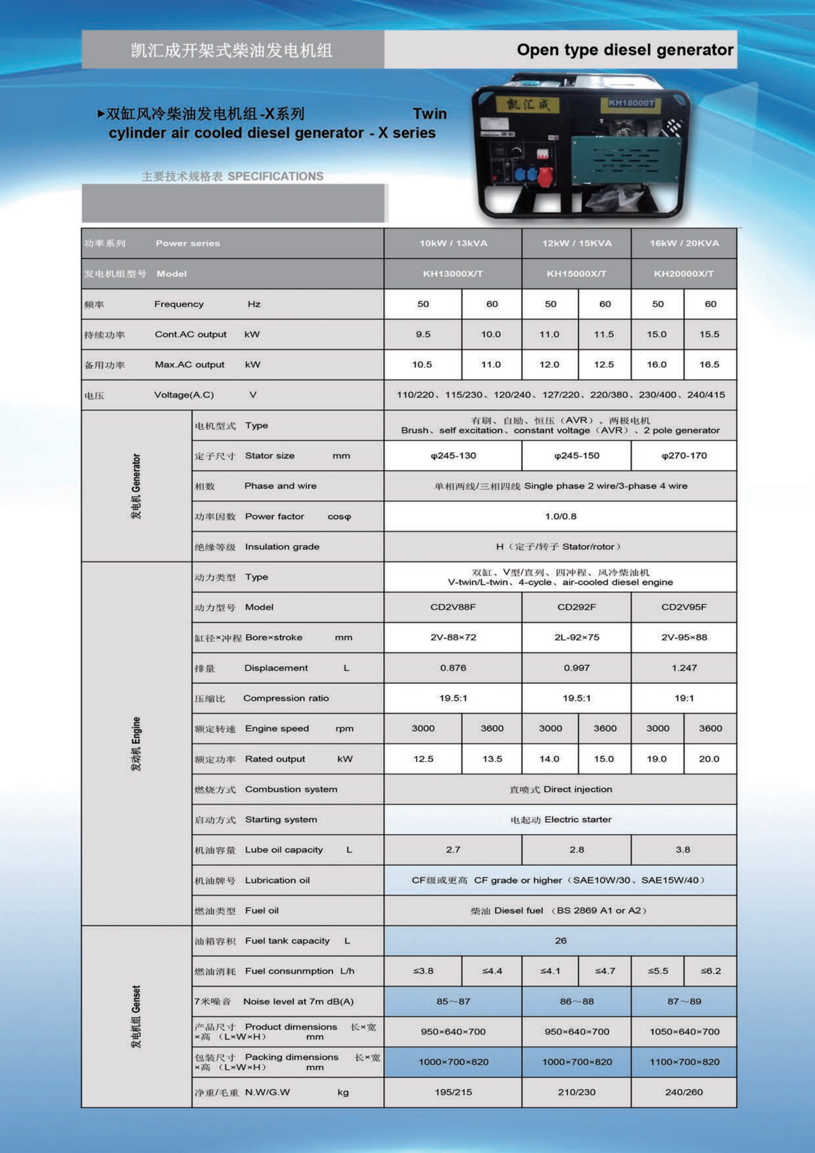 | 发电机 | 励磁方式 | AVR电压自动调节 | |