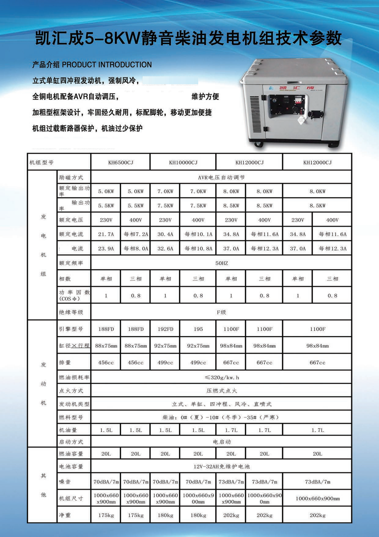 | 机组型号 | 凯汇成柴油发电机 | ||