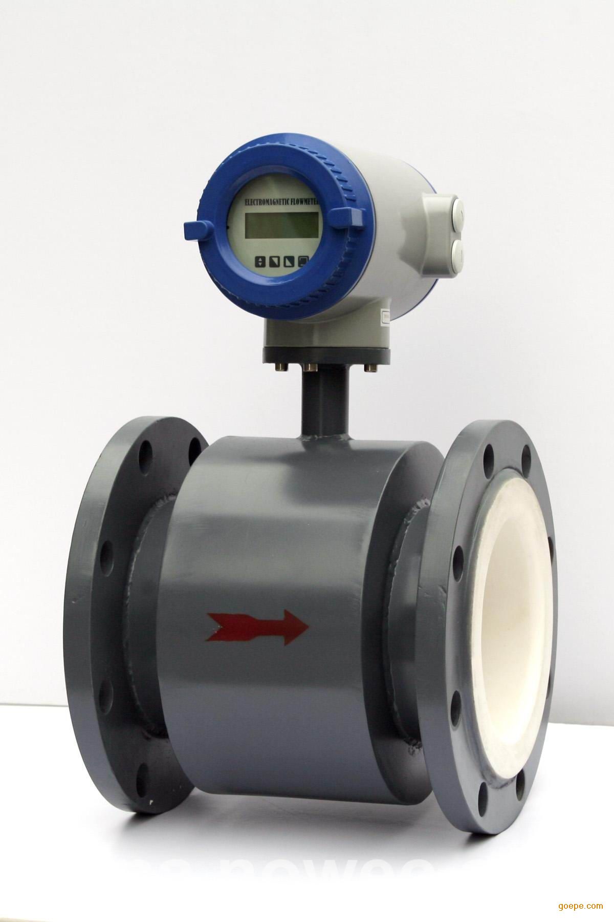 测量管内无可动部件,便于维护管理;无阻流部件,因此无压力损失。被测液体*低电导率≥5μ s/c m,配合各种衬里材料,可适用于测量各种酸、碱、盐溶液及泥浆、矿浆、纸浆等介质的流量。流量的测量不受流体的密度、粘度、温度、压力和电导率变化的影响,传感器感应电压信号与平均流速呈线性关系,测量精度高。合理选用衬里及电极材料,可实现良好的耐腐蚀性和耐磨性。低频矩形波激磁,不受工频及现场各种杂散干扰的影响,工作稳定可靠。不受流体方向影响,正反向均可准确计量。量程比1:120(0.1m/s~12m/s),满量程流速范围宽。汉字液晶背光显示,可在线修改参数,操作简单方便。具有空管测量、报警功能,并能适应不同的流体介质。掉电时间记录功能,自动记录仪表系统电源间断时间,补算漏计流量。小时总量记录功能,以小时为单位记录流量总量,适用于分时计量制。