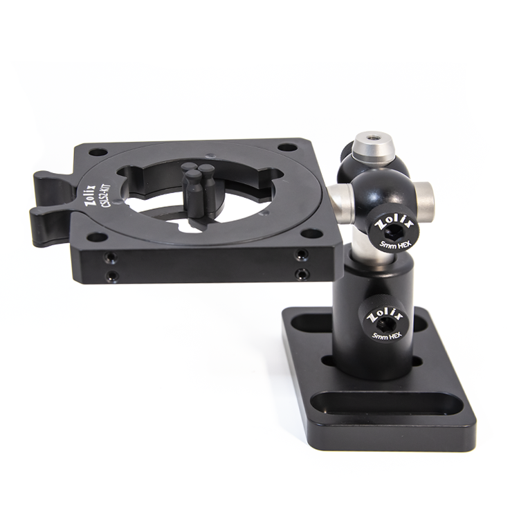 ZOLIX提供的安装座兼容60mm笼式系统,用于安装直径范围在3.8 mm-46 mm的光学元件。通过三个弹簧式夹臂固定光学元件 ,夹臂可通过单手进行操作。笼杆连接通孔处各配有一个位于侧面的锁紧固定螺丝,可使用1.5 mm六角扳手紧固安装座。安装座底部带有一个M4螺纹孔用于连接接杆,自定心透镜安装座兼容笼式系统和自由空间。