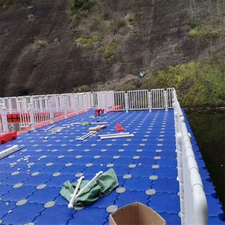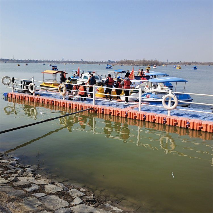 “组合模块式浮动平台”系我司立足于本企业强大研发、生产能力,为优化国内水域事业所生产的*业水上平台项目。作为新型环保产品,具有以下特点:1、材质采用高分子量高密度聚乙烯(HMWHDPE),为*腐、防冻、抗*化、抗*化线的强化材质,不受海水、化学品、药剂、油渍及水生物的侵蚀;无污染、不破坏环境。2、浮筒体上部表面采用防滑花纹设计,安全稳固;四角皆为圆弧钝角造型,避免一般水泥、木制、铁制设施所常见的危险,例如:滑倒、被碎木屑、锈钉刺伤等。3、较高承载力,筒体平稳、耐久,每平方米的承载力可达350kg以上。 4、本产品使用寿命更是在10年以上,除了自然中不可抗力及人为的不当使用外,几乎不需花费保养、维修费用。5、组装简易、快速、灵活、造型多样,整体采用模块结构,可配合各种景观的需要,迅速更换平台造型;外观色彩亮丽,造型优美,为景区锦上添花,增强宣传效果。6、造价合理、经济,从长远的观点来看,可省下为数庞大的维护、保养、更替、检修的费用及时间。7、配套设备*全,有系船栓、缆桩、防撞球、护栏、登岸舷桥及踏板等,码头可停泊各种大小船只;另因水上浮动平台其浮力的特性,码头可随水位起落而自动升降,旅客上下船只的安全、舒适性大增。