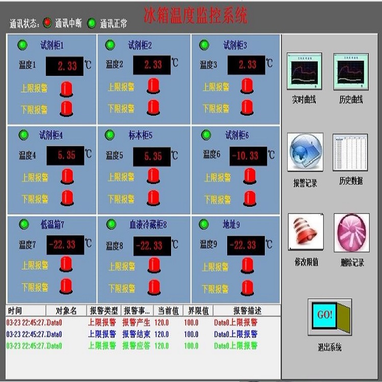 根据设置的温度参数进行现场报警,远程报警,定向报警等;各级*中心的管理人员可查询所负责区域的温度历史情况和实况;达到对冰箱的集中控制,实现冰箱的温度的实时在线监管。
