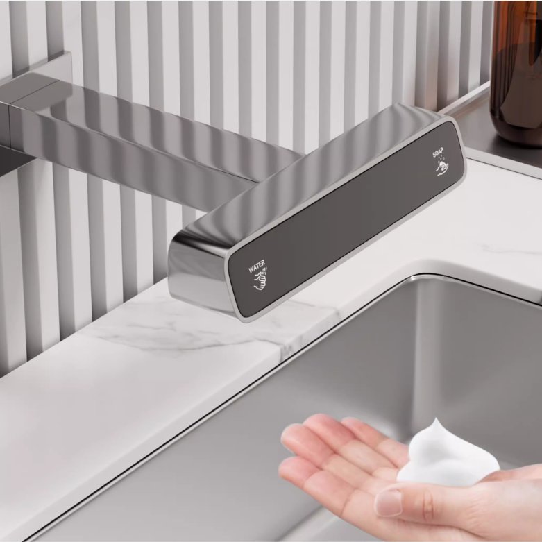 3.左侧感应出水,右侧感应出泡沫,两种功能互不干扰。