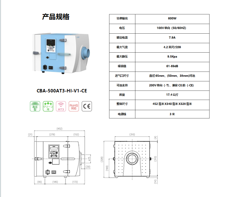 CHIKO紧凑型高压集尘机CBA-500AT3-HI-UL2