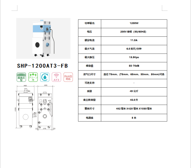 CHIKO超高压集尘器SHP-1200AT3-FB