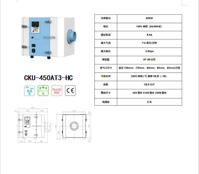CHIKO小型高压集尘机CKU-450AT3-HC-CE