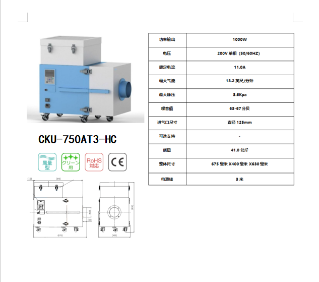 CHIKO小型高压集尘机CKU-750AT3-HC-CE