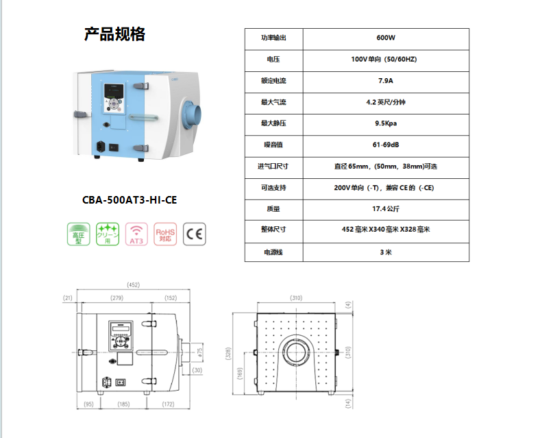 CHIKO 洁净室 小型高压集尘机CBA-500AT3-HI-CE