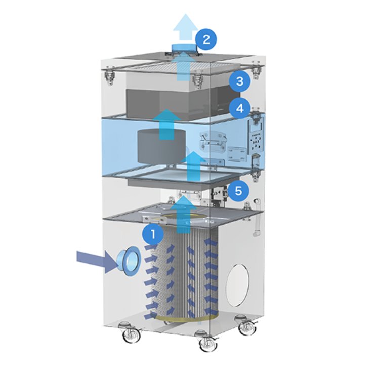 -2次过滤器的除尘效率:0.3 µ的颗粒,98%以上