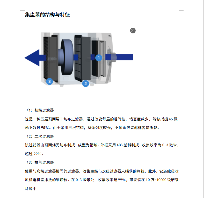 )的高效除尘机。可使用于洁净级别
