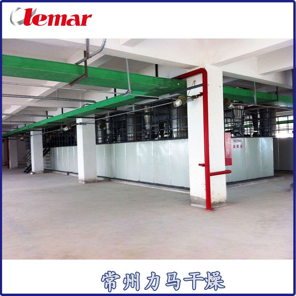 颗粒物料干燥附属装置的技术领域,特别是涉及一种卧式沸腾床干燥机,方便对滤袋进行清理,而且可以实现不停机清理,提高使用可靠性,包括干燥机,干燥机的内部设置有工作腔,干燥机的底部设置有热空气进气管,干燥机的右端设置有加料器,干燥机的底端设置有卸料斗;还包括四组安装管、四组连通风管和排风管,四组安装管的顶端均与工作腔的内顶壁固定连接,并在四组安装管的底端均设置有密封板,密封板上设置有四组安装孔,并在四组安装孔处均安装有除尘布袋,干燥机的顶端设置有四组抖袋气缸,四组抖袋气缸的底部输出端均设置有气缸杆,还包括十字支架、圆环、牵引绳、风阀、开关气缸和离心风机。