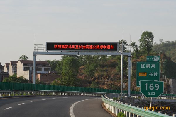 门架式可变信息标志屏是交通状况及交通诱导信息发布的重要设备,它是以LED发光器件为基本显示单元的交通信息显示设备,具有图形及文字显示作用。根据交通、天气及指挥调度部门的指令信息,操作员可向可变情报板发布各种通告和信息,从而有效地对交通流量进行诱导,提高路网的交通运输能力,为驾驶人员安全快速行车提供优质服务。