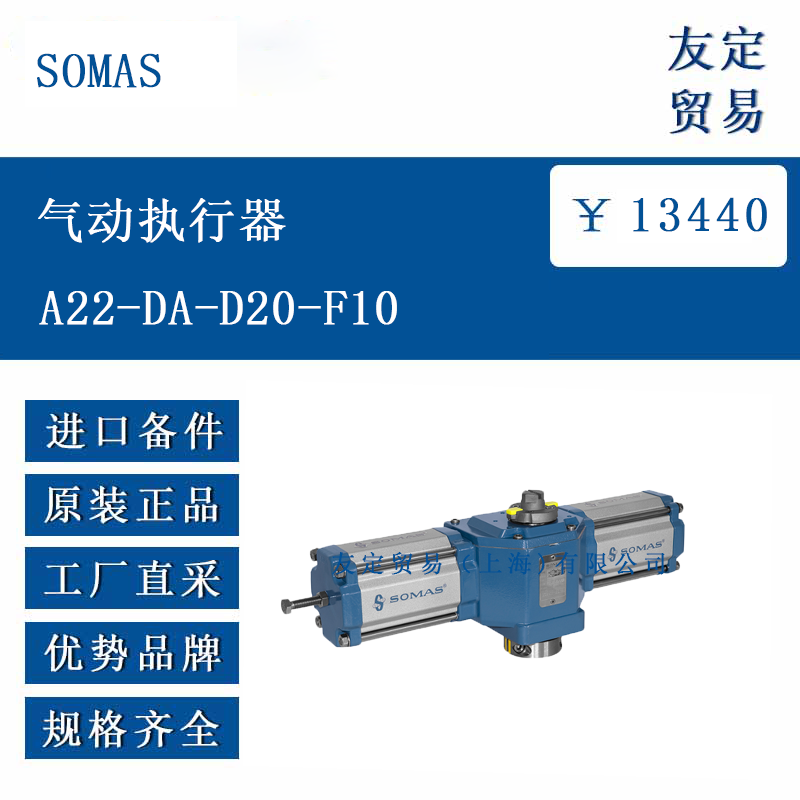 SOMAS A22-DA-D20-F10 是一款双作用气动执行器,主要用于驱动 90° 旋转阀门(如球阀、蝶阀、球段阀等),实现工业管道中流体的开关或调节控制。其设计基于紧凑结构,采用专利无背隙扭矩传输技术(适用于 D≤50),确保控制精度与可靠性。执行器通过气压驱动活塞,将直线运动转化为旋转运动,适配 ISO 5211 和 VDI/VDE 3845 标准接口,可与多种阀门及附件标准化连接。