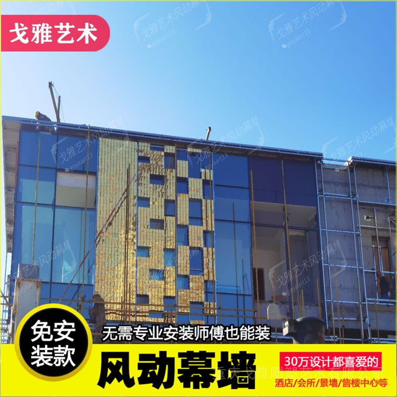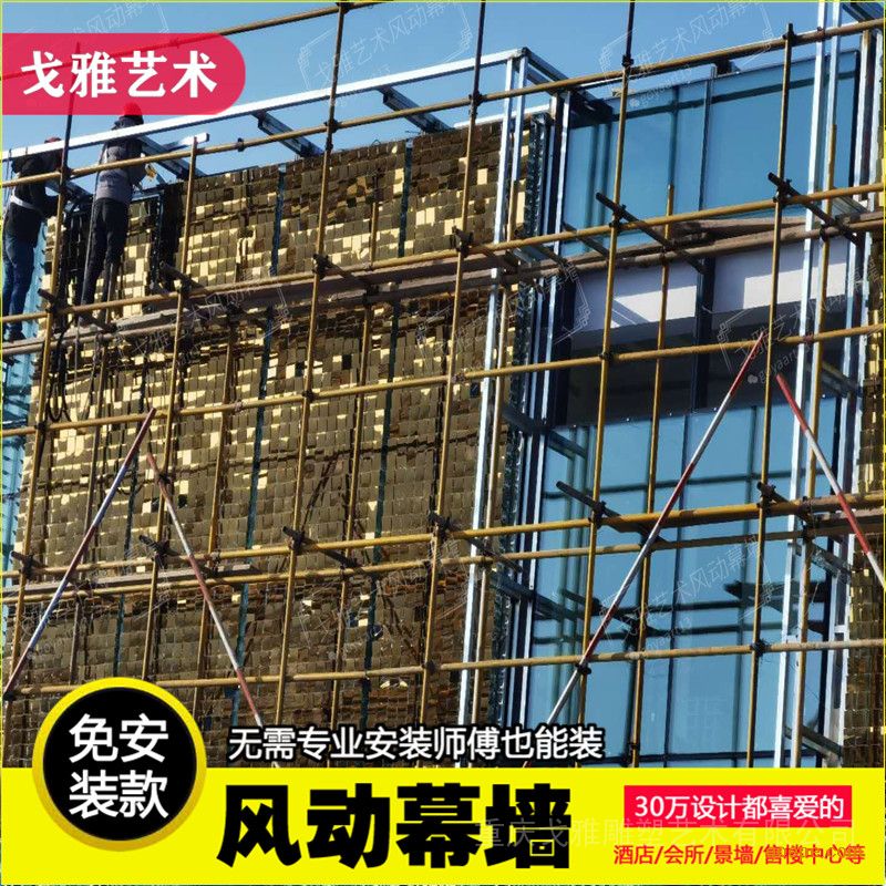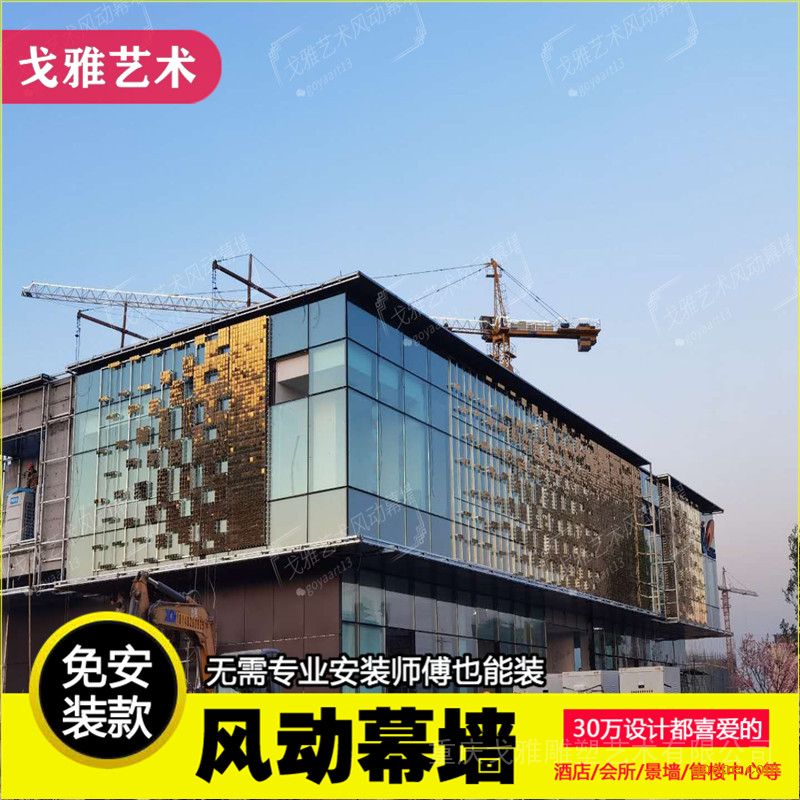 重庆戈雅艺术承接了碧桂园呼和浩特星作项目的售楼部幕墙制作及安装工程,整体采用304不锈钢镜面黄金色风铃片;横杆式的100*100风动片在风力的作用下翩翩起舞形成一道美丽的风景;项目从制作到安装耗时45天呈现了风动景墙的成品效果得到了客户的认可