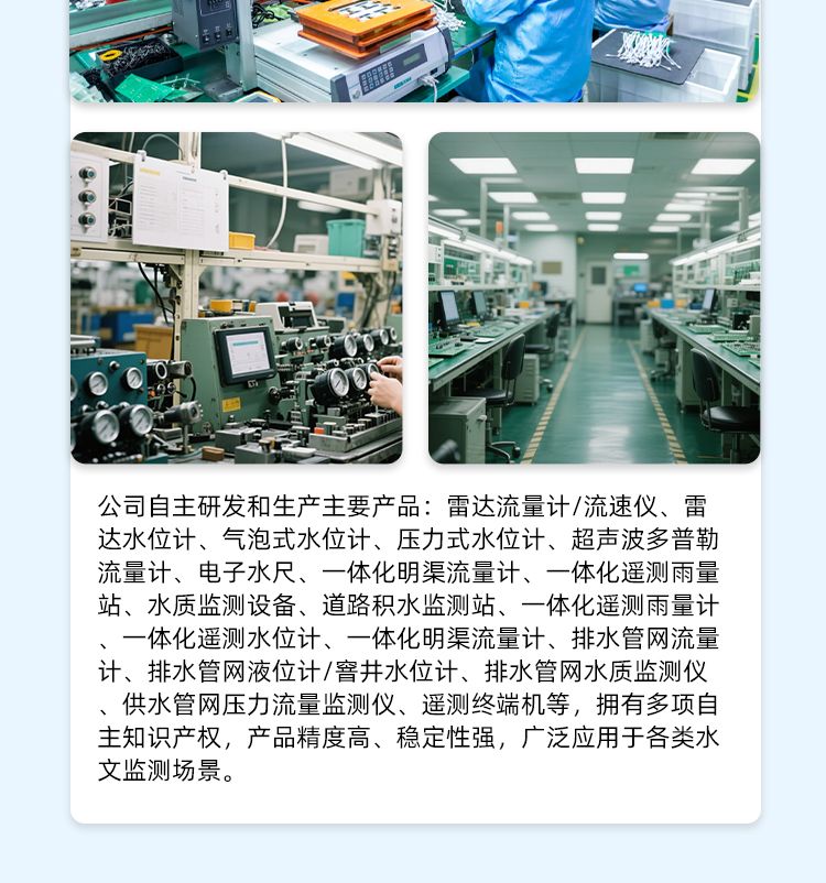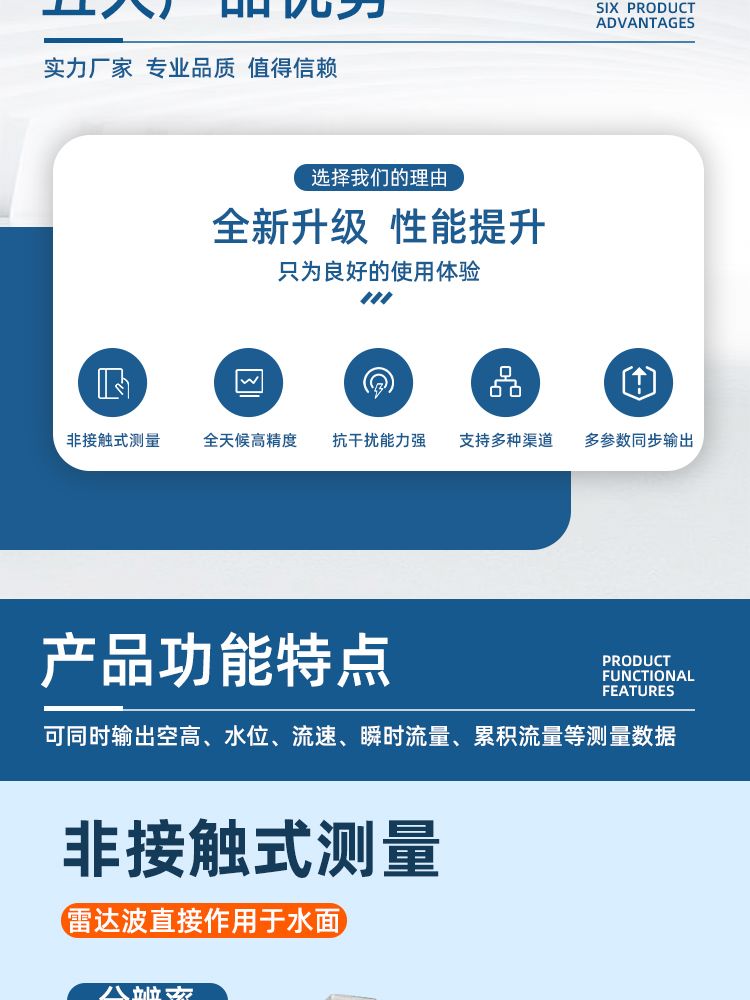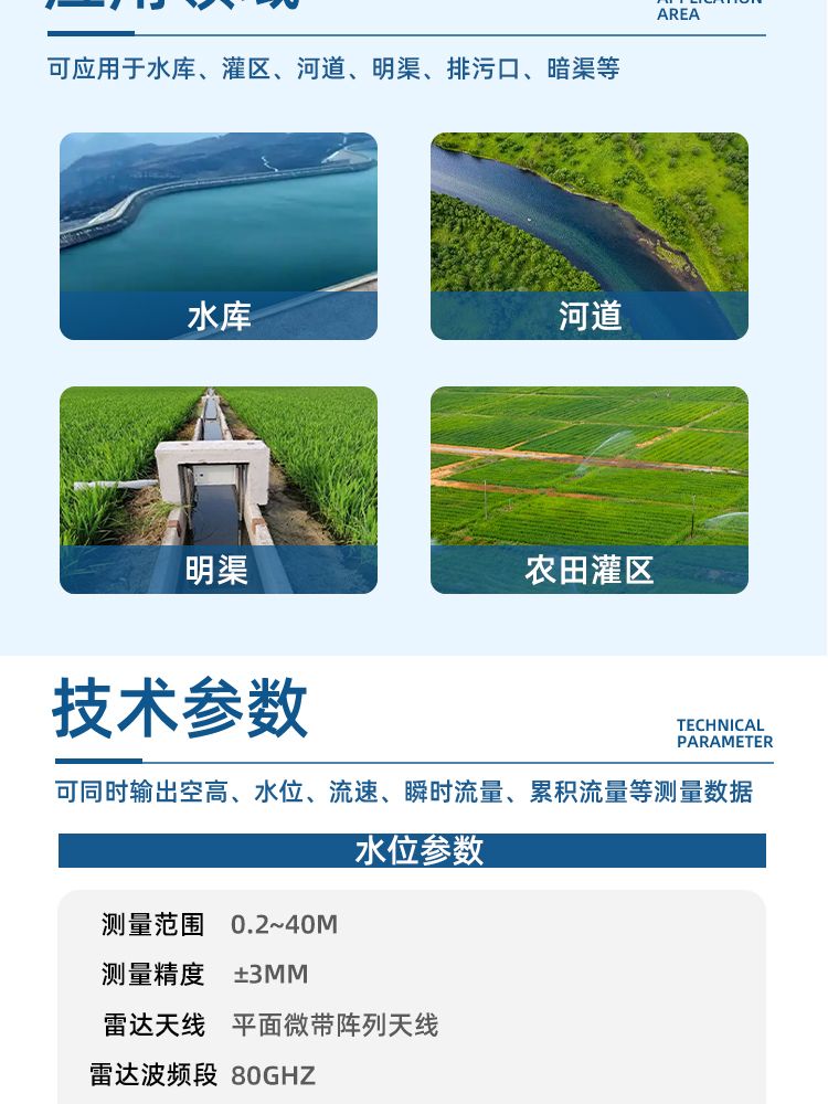 ※ 非接触式测量,采用雷达波直接作用于水面,无需与水接触,避免设备腐蚀、泥沙干扰及漂浮物缠绕等问题,降低维护成本。
