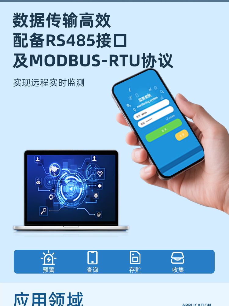 ※ 数据传输高效,配备RS485接口及ModBus-RTU协议,无缝接入监控系统,实现远程实时监测;