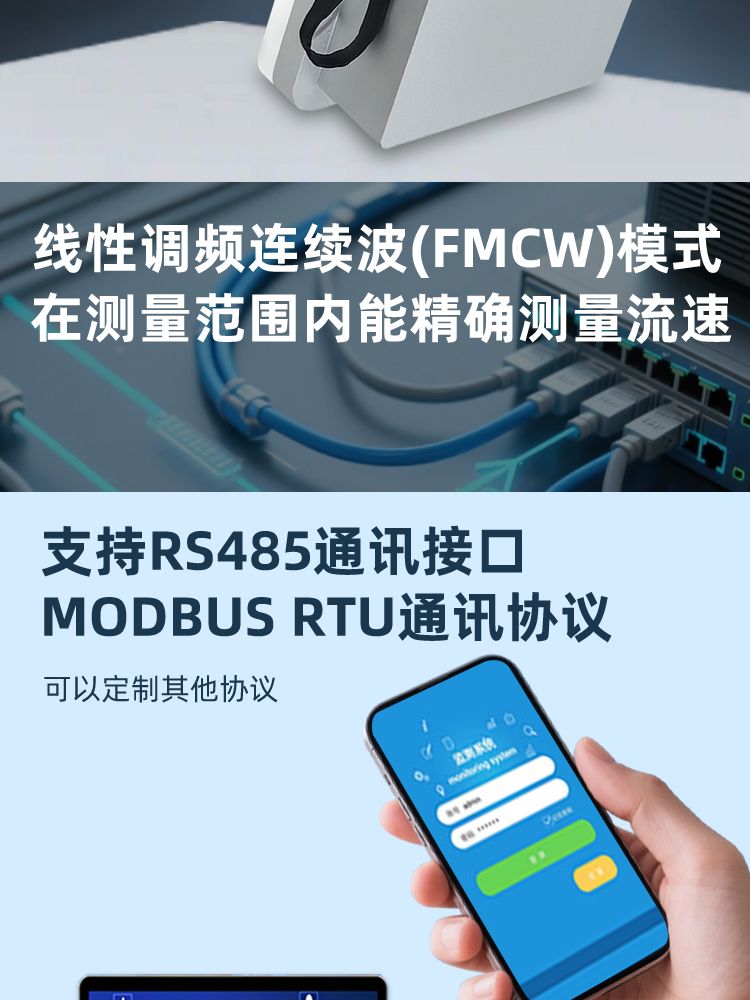 ※ 采用线性调频连续波(FMCW)模式,在测量范围内能精确测量流速;