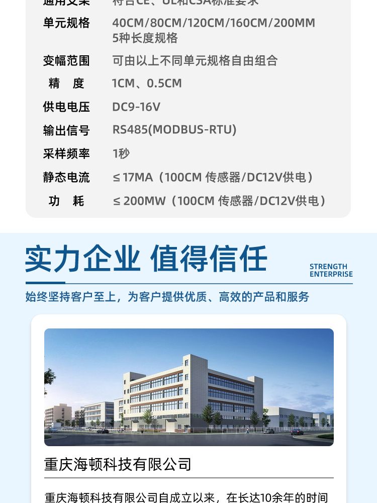 ※ 采样精度与长度无关,不同变幅的传感器测量精度保持不变;