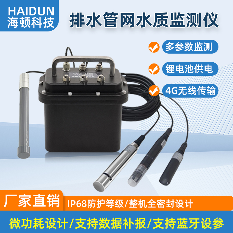 HD-WQD350系列排水管网水质监测仪,可以通过GPRS/4G等方式进行组网通信,特别适用于无市电供电条件、防水要求高的监测现场,主要应用于雨水管网、污水管网、工业园区污水排口等监测水质的场景。