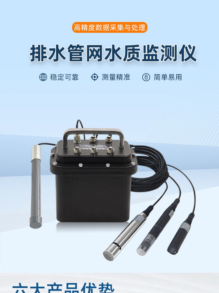 ※ 多参数同步监测,支持pH值、浊度、SS、ORP值、溶解氧、电导率、COD、氨氮、水中油等10余项参数的同步或依次检测,覆盖有机物污染、酸碱度、自净能力等核心水质指标;