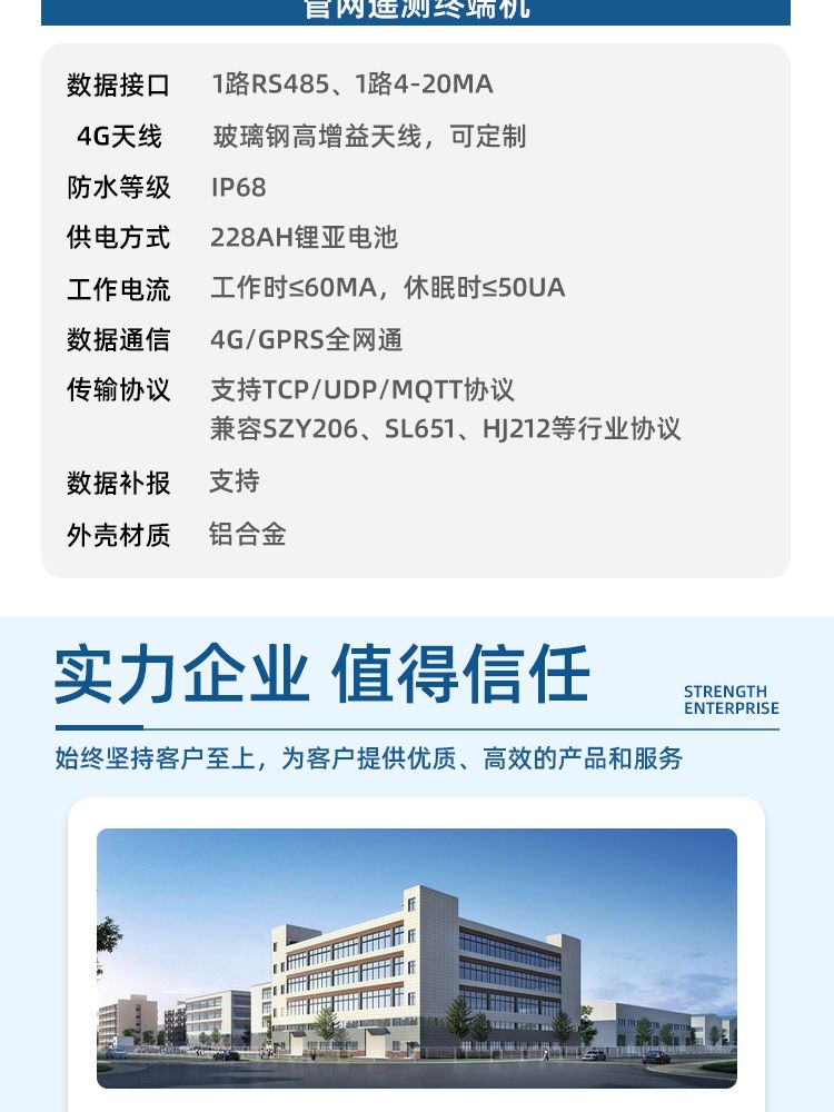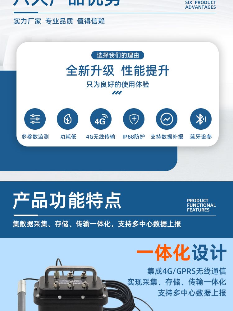 ※ 集成4G/GPRS无线通信,实现采集、存储、传输一体化,支持多中心数据上报;