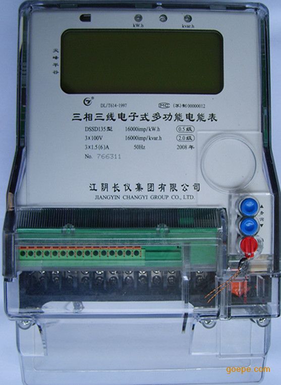 产品系列: 电度表系列--DTSD135/DSSD135 产品名称: 长仪DTSD135/DSSD135系列 三相电子式多功能电度表 系统概况: DTSD135/DSSD135型三相电子式多功能电能表是为了适应我国电网改造,适应电网自动化需要而开发的具有通讯功能的全电子多功能电能表,该表适用于50Hz三相交流电网,它能实现对有功双向数据处理,同时实现四费率*大需量指示及在线监测电网运行状况。 系统特点与功能: 四中费率:尖、峰、平、谷 一年*多10个时区,每天*多10时段,*小时段间隔1min 有功正反向电能计量,且均为四费率及总电能计量 实现有功正反向,无功四象限四费率需量计量功能 备用电池欠压指示 支持红外通讯功能,可用红外手持机按编程保护级别进行编程及抄表,通讯距离≥4m 支持RS485,可用电表进行抄收和设置,通讯距离≥1200m 有源脉冲或无源光电隔离脉冲输出 停电抄表 产品详细说明: 外形及安装尺寸图 规格及主要技术参数 型号 DTSD135 DSSD135 额定电压 3×220/380V,3×57.7/100V 3×100V,3×380V 精度等级 有功0.2、0.2S、0.5、0.5S、1级,无功2级 标定电流 1.5(6)A 环境温度 -20℃~55℃ 相对湿度 25~95% 功率消耗 每相电压线路有功功耗≤2W,视在功耗:≤5VA, 每相电流回路视在功耗:≤2.5VA 日计时误差 <0.5s/d(23±2℃) 时段切换误差 0.1s 执行标准 DL/T614-1997,GB/T645-1997 整机重量 1.9kg