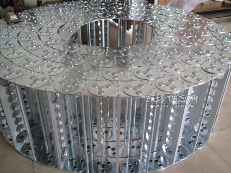 2、钢铝拖链拖链的支撑板宽度为 150mm 至 800mm, 孔与孔之间的间隔量为10mm.链板的九 江重工钢制拖链,重工机械穿线保护电缆钢制拖链现货供应高度也就是支撑板的高度,是由电缆zui大直径决定的.