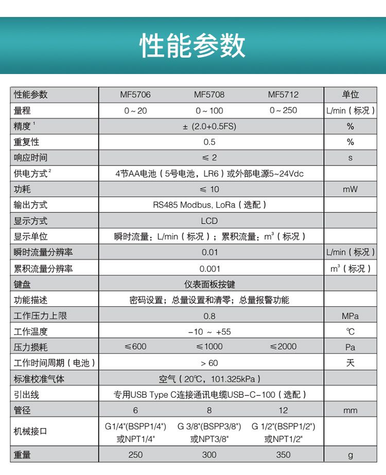 - MEMS技术应用,实现小流量测试,精度高