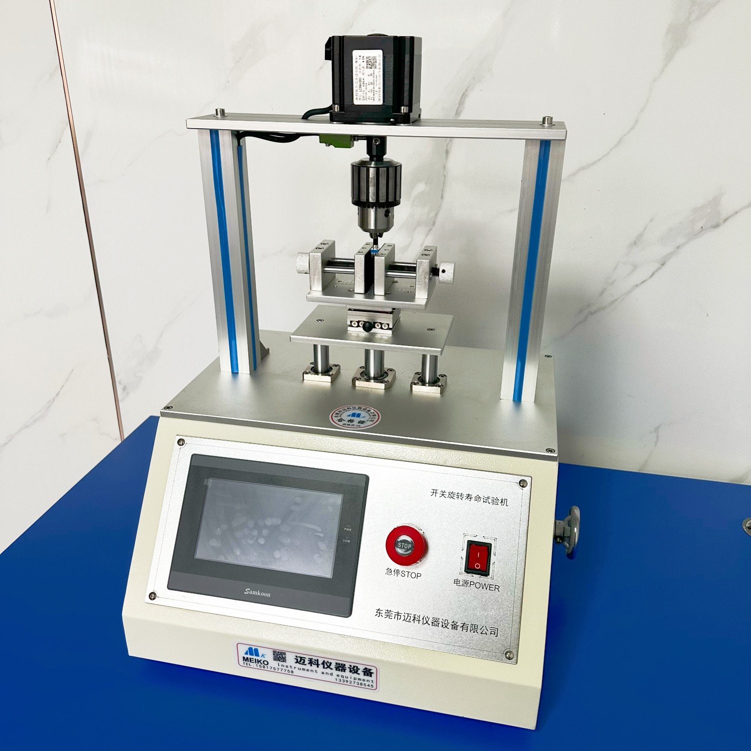 旋转编码器寿命试验机用于旋转编码器、电位器开关等开关旋转寿命测试。旋转编码器寿命试验机采用触摸屏控制设置且显示,旋转治具固定测试产品在一定角度、速度、次数、时间反复循环测试。