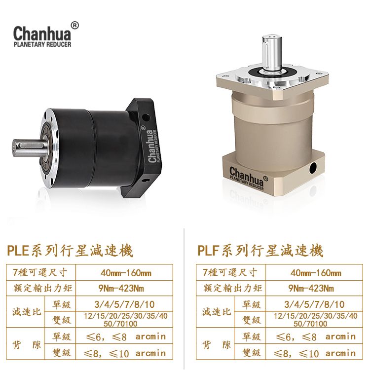| 减速比高 | 采用模块化设计,行星齿箱可相互连结,速比可达1/1000以上; | ||||